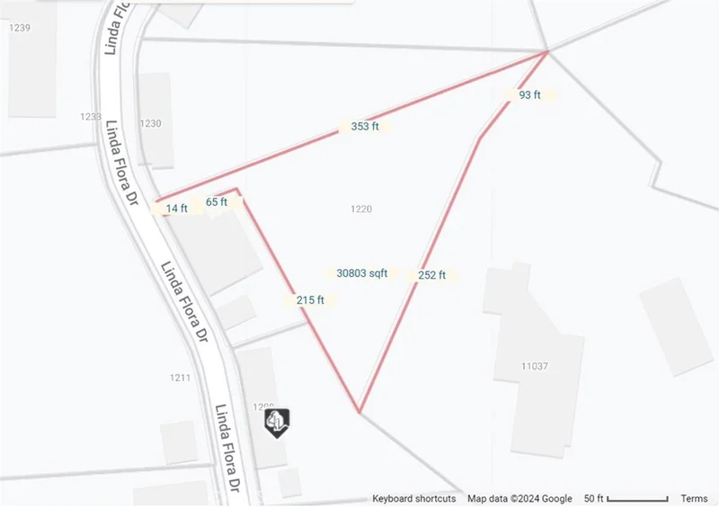 Experience this 30,811 sq ft vacant lot of vast canyon located off of Linda Flora Drive in Bel Air! Triangular land with an approximate 15 ft frontage from the street & public access. The parcel is downsloped with an exclusive enclave setup surrounded by prestigious residences.