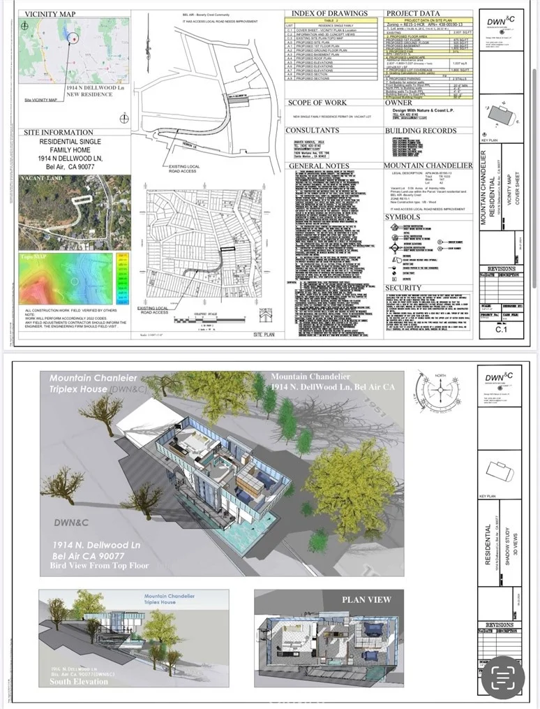 An excellent opportunity for future investment or personal use. The permit processing includes architectural plans for a 3-story, 1,800 sq. ft. home featuring 2 bedrooms and 2 bathrooms, with panoramic views of the mountains, city, park, and sunsets. Additionally, there’s a bonus 600 sq. ft. basement planned for a pool and gym, accessible directly via an elevator from the entry. The property also includes a 2-car parking space conveniently located in the front driveway and features a local walkable access road directly from Hebron Rd to the land. Land Very close to Beverly glen blvd just moments from the iconic Bel Air Boulevard Buyer/ Buyer Agent to conduct their own due diligence to investigate, All Information deemed reliable but not guaranteed. Driving : N Beverly Glen and Left Hebron lane and drive on the way up Land will be on your left side and there is way to walk to the land , The Hebron Ln is on South of the property. Please see the map direction on the picture.