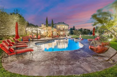 Welcome to your dream home nestled in a prestigious guard-gated community, offering unparalleled privacy and serenity. This stunning 5-bedroom, 5.5-bathroom residence spans an impressive 6,021 square feet and is situated on a sprawling 4.69-acre lot. Built in 2007 and recently updated, this property combines modern luxury with tranquility. As you step inside, you are greeted by an open floor plan that seamlessly connects living spaces while allowing for ample natural light to flow throughout. The recently updated kitchen boasts high-end appliances, sleek countertops, and custom cabinetry, making it a chef’s paradise. Each of the five en suite bedrooms are generously sized, providing comfort and privacy for family members or guests. The primary suite features an expansive layout with a luxurious Spa-like bathroom complete with steam shower and direct access to a huge viewing deck that offers breathtaking views of the surrounding landscape. The Open floor plan also includes a game room perfect for entertaining friends and family, as well as a dedicated home gym for those who prioritize fitness. The inspiring study provides the perfect space to work with complete privacy. The property also features an elevator and EV charging capabilities in the garage for additional convenience. Step outside to discover beautifully manicured gardens that enhance the property’s amenities and provide a serene outdoor environment. Multiple covered patio spaces invite you to enjoy al fresco dining or simply relax while soaking in the tranquil surroundings. The expansive backyard features a sparkling pool and spa area—ideal for both relaxation and entertainment. The 4 plus acre grounds offer plenty of room to expand and add additional outdoor areas if you wish. This exquisite home combines luxury living with nature’s beauty in a secure serene setting—making it an exceptional opportunity for discerning buyers seeking both comfort and style. The Bell Canyon community amenities compliment this amazing home which include Twenty four hour guard gated entry, Residents-only park, Miles of maintained trails, A community Equestrian center, Direct trail access to the Santa Monica Nature preserve, Community tennis courts, Residents gym, Organized adult and children’s events throughout the year, Award winning Las Virgenes school district with school bus service to the community, and just minutes to freeways, beaches and some of LA’s best shopping and dining locations.