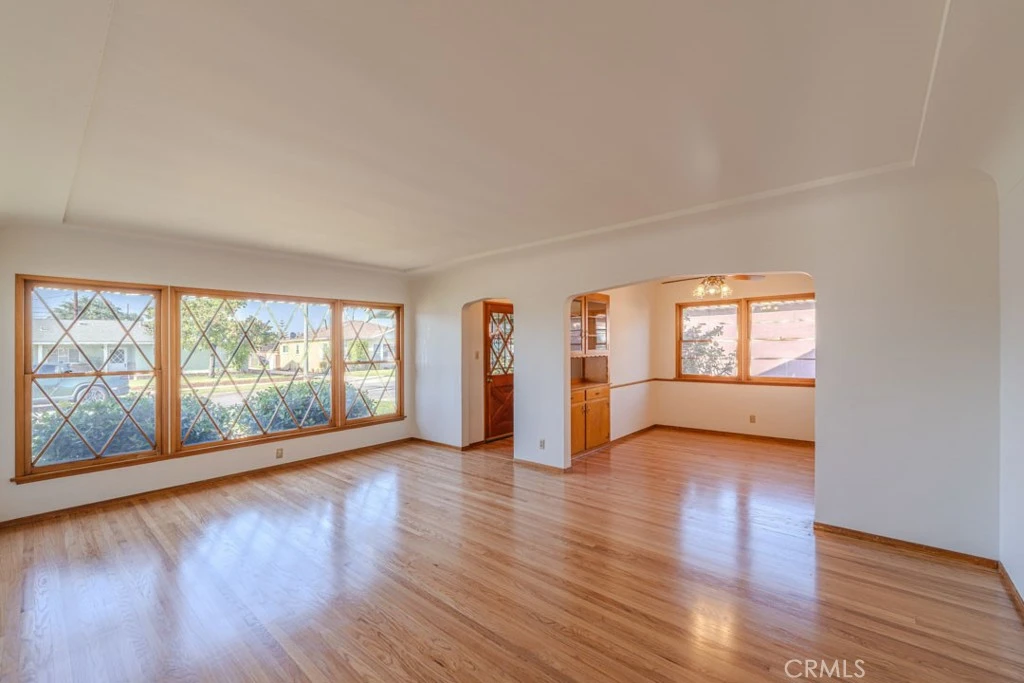 An exciting opportunity in a highly desirable area of Bellflower. This 3 bedroom, 1 and 3/4 bath single family home features wonderful features both indoors and out. Stepping through the formal entry way is the expansive living room with tons of natural light. The living rooms original hardwood floors have been beautifully refinished as were all the hardwood floors throughout the home. Light and bright the home has a fresh coat of paint throughout the property. Looking from the living room you see an inviting formal dining room greeting you under the arched entrance. The dining room has a built in cabinet and connects directly to the kitchen. The kitchen features newer flooring and encompasses another eating area. Connected to the kitchen you are greeted with a large, bright den with a sliding door leading outside. The den itself has a warm fireplace, tall exposed beam vaulted ceilings and new flooring recently installed. This den has an attached 3/4 bath and could suitably function as a 4th bedroom. On the other side of the home are the 3 bedrooms all with hardwood floors, bright windows and all are easily accessible to the full bathroom with retro original style. Stepping out of the den you have a covered deck perfect for enjoying summer days. The driveway that connects from the street all the way to the back of the property is extra long and arrives at the 2 car garage and large parking pad, plenty of room for multiple vehicles. The 2 car attached garage has the washer and dryer hookups. Don’t miss out on this pride of ownership home in a great area of Bellflower.