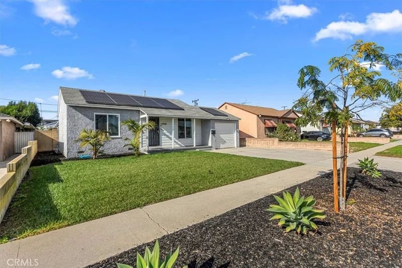 Welcome to this charming 3-bedroom, 2-bathroom Bellflower home, ideally situated on a quiet residential street. This light-filled residence offers a functional and comfortable floor plan with inviting living spaces and generously sized bedrooms. The recently renovated kitchen features ample cabinetry, updated finishes, and plenty of workspace - perfect for everyday living and entertaining. The primary bedroom includes a private en-suite bathroom for added comfort and convenience. Additional highlights include a newer AC/Electrical Panel, providing peace of mind for years to come, and a leased solar system that offers energy-efficiency benefits (buyer to assume lease). Step outside to a large, spacious lot with a backyard ideal for outdoor entertaining, gardening, or future expansion possibilities. Conveniently located near schools, parks, shopping, dining, and easy freeway access, this home presents a fantastic opportunity for homeowners or investors looking to enjoy and add value in a desirable Bellflower neighborhood.