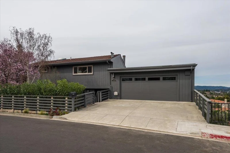 Perched in the hills of Belmont, this stunning multi-level home offers 3 bedrooms, 2.5 baths, a versatile loft, and jaw-dropping panoramic views of the San Francisco Bay, Bridges and SF Skyline. The open, light-filled design takes full advantage of its scenic setting. The living room wows with soaring ceilings, a cozy fireplace, and expansive windows framing the bay. A sleek kitchen with European cabinetry, granite counters, breakfast bar flows into a casual breakfast area and a formal dining room perfect for any occasion. The spacious family room invites relaxation, while the lower level features two bedrooms, a full bath with a luxurious jet tub, and convenient laundry and storage spaces. The top-level primary suite is a private retreat with a balcony, custom walk-in closet, and a spa-like bath adorned with Porcelanosa tiles and premium finishes. A loft space completes the upper floor, ideal for work or unwinding. Hardwood and wood floors, Italian light fixtures, and fresh paint inside and out add modern style throughout. Conveniently close to top-rated schools, parks, shopping, and commute routes, this home is a perfect blend of beauty and practicality. Don't miss it!