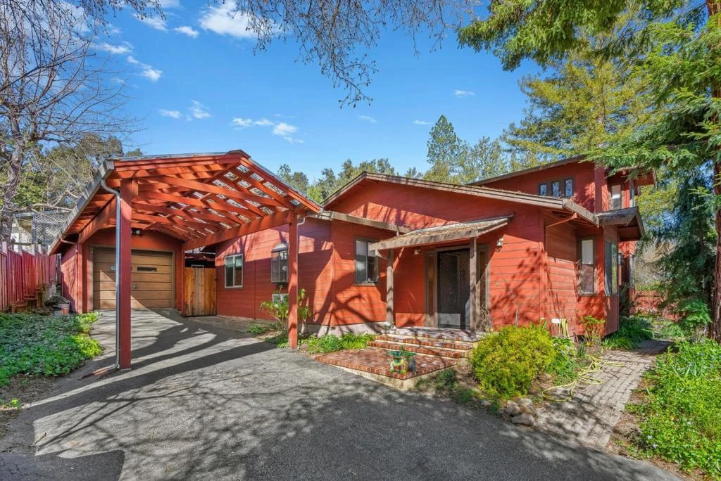 Wonderful 4 bedroom home on a large sunny gated lot in great Ben Lomond neighborhood walking distance to downtown and river. Mostly level floor plan with an upstairs loft providing a variety of uses. Recessed lighting was added to the main living spaces. Beautiful wood floors connect the living room and family room which has a cozy wood stove. Separate dining room. Large functional kitchen with breakfast bar, storage bench, and tons of cabinets is ready for your updates. The primary bedroom has a cozy wood burning stove, 2 walk in lighted closets and an ensuite with an updated spacious walk in tile shower and floor. The hall bath has an updated vanity. Soak in your hot tub in the fenced private sunny backyard that has a deck, patio, and garden spaces. The detached garage has laundry and a workshop space. The lot across the street is also included and has a gate, a covered carport and a shed. Close to restaurants, shopping, hiking, biking, swimming. Centrally located in SLV with an easy drive to Los Gatos/Bay Area or Santa Cruz Beaches and Monterey/Carmel.