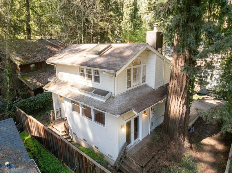 Opportunity awaits in the heart of the redwoods! This 2 bed, 2 bath home offers a functional floor plan with hardwood floors and abundant skylights that bring in natural light. Remodeled in 1989, the home features an upstairs primary bedroom with peaceful redwood views and a large bonus loft ideal for storage or flex space. The kitchen includes an open-concept for casual dining and entertaining. Stay cozy with a wood stove and forced-air heat during cooler mountain evenings. Backyard space and shed provide a quiet spot to enjoy fresh mountain air. A perfect chance to customize and create your dream home. Conveniently located near downtown Ben Lomond shops, dining, and local amenities, with easy access to nearby Henry Cowell Redwoods State Park and historic lime kiln trails for hiking and exploring the forest.