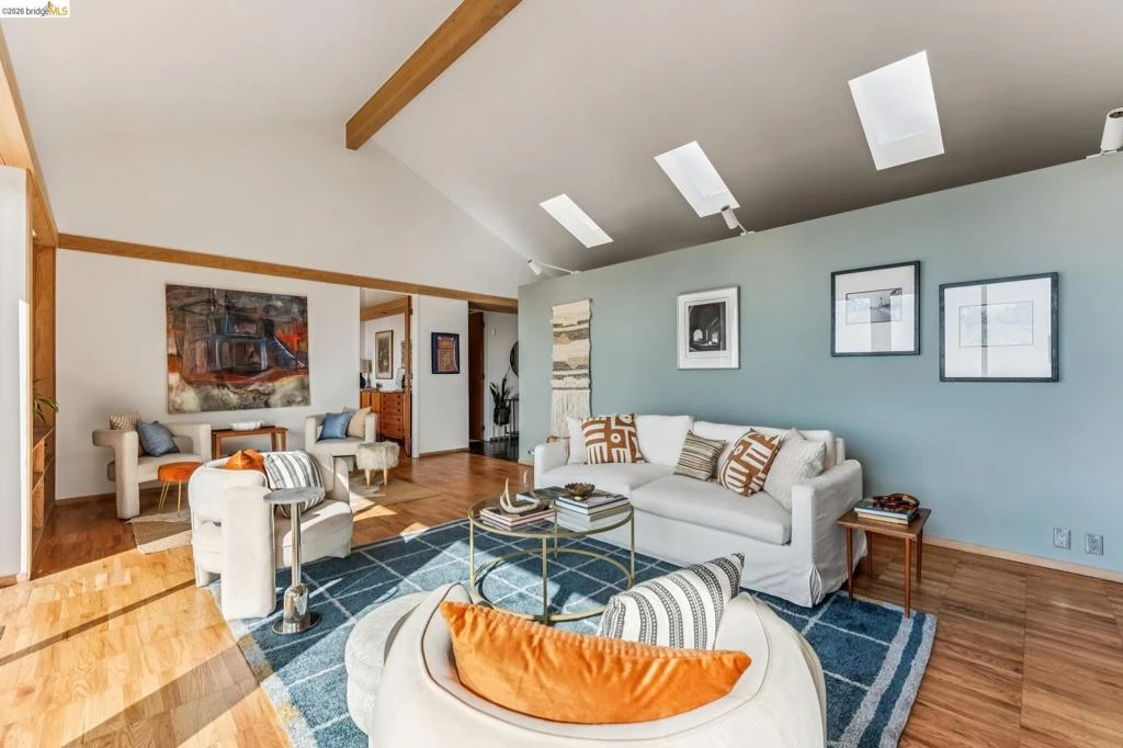 Mid-century with luscious lifestyle; views from all bdrms, living rooms, dining room, & kitchen. Generous great rooms, decks to view, and a pristine pool to vacation at home. Rarely does a Berkeley home of this style and size come to market. Built by the seller's family, tucked away on a quiet street, this home embraces stunning views of the western skyline, SF, Golden Gate Bridge, and the brilliant Bay Area. The rooms appoint the beauty of life, sit and view the Bay or enjoy the many outdoor spaces. Enjoy a dip in the starlit pool, also with views, and for your convenience, there’s a changing room with a shower. Discover inspiration overlooking the vast garden, and find magic in your exchanges with nature. With 4+ bedrooms, an office, and 3.5 bathrooms, this home offers 3 levels with 4000+ sq ft* of artistry. The kitchen: it’s hard to do the dishes when you can’t stop viewing the Golden Gate Bridge, with a large pantry, & eat-in space, that opens to a private deck space. Expansive living; capturing places to retreat, work, or relax. Located in the North Berkeley Hills, embraced by Tilden Park trails, Solano Avenue, N. Berkeley and College Avenue shops & restaurants are just minutes away. *sqft pub.BESO score 1
