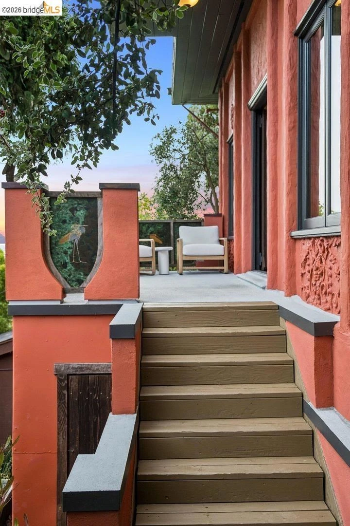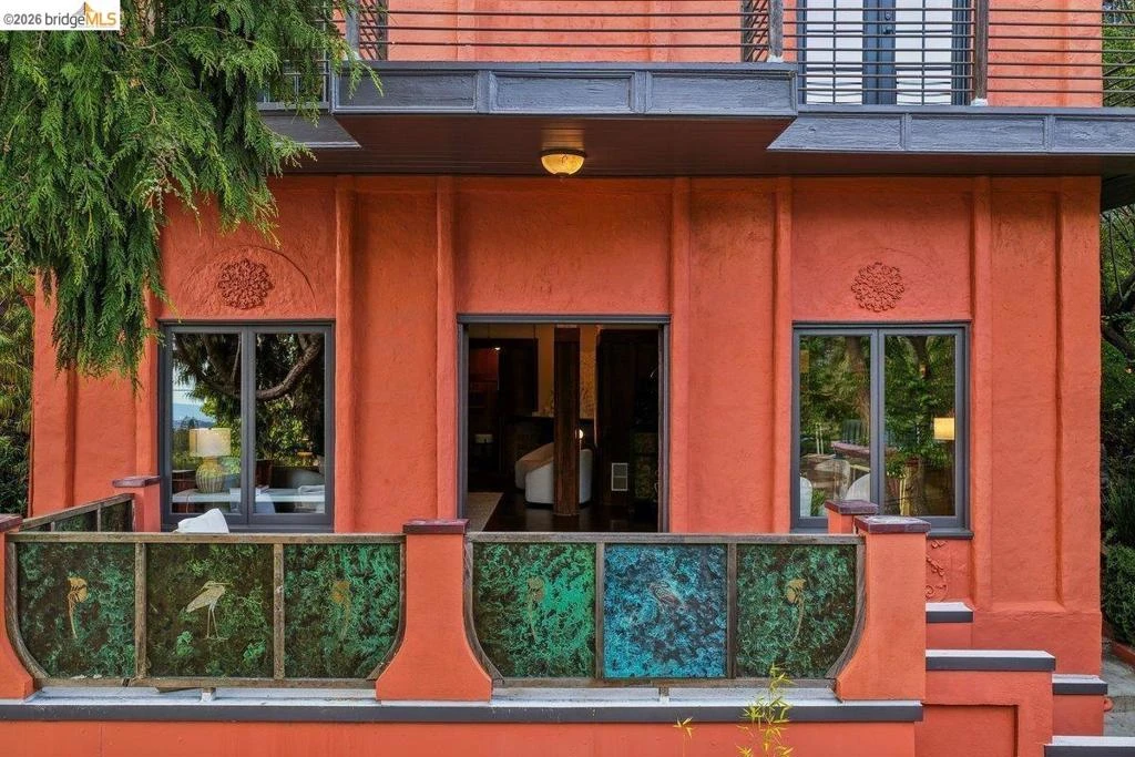Some homes are built. Others are composed. In the early 1920s, artist-architect Paul Beygrau and his wife, Marie Rosalie Schaff, a gifted woodcarver from Alsace, arrived in Berkeley after distinguished work abroad. Trained in both fine arts and architecture, Beygrau had designed interiors for royal commissions in England and public buildings in Winnipeg. Together, they turned to a deeply personal project in the Berkeley hills, creating neighboring homes that would express their shared artistic vision. Home Energy Score of 1 At 1049 and 1051 Keith Avenue, they produced what many regard as their collaborative masterwork - a rare expression of European artistry translated into California architecture. Featured on the front page of the San Francisco Chronicle in 1928, the home was described as “the most remarkable expression of domestic art and architecture in the Bay Region.” At 1049 Keith, artistry is present in nearly every surface. Massive hand-carved doors, reportedly shaped by Marie herself, open to interiors rich in material and craft. Inlaid hardwood floors run throughout, while the living and dining rooms unfold with grand scale, clad in solid redwood wainscoting. Overhead, decorative ceilings reflect European fresco traditions, reimagined in sculptural plaster and painted finishes. The main level is anchored by these dramatic spaces, along with a period-inspired kitchen and marble-appointed bath. Upstairs, the primary suite feels expansive - defined by a columned atrium ceiling and French doors opening to a sweeping view deck. Two additional bedrooms offer distinct character: one wrapped in warm wood for a more intimate feel, the other a larger, double-sized room with fireplace, garden access, and an ornate ceiling. Outside, the grounds cascade in a series of terraces - an upper level for dining and gathering, a middle expanse for recreation, and lower gardens with raised beds for planting. A detached apartment, tucked privately on the property, includes a lofted sleeping area and its own terrace, ideal for guests or creative use. At once architectural artifact and living home, 1049 Keith Avenue offers something rare: a place where history, artistry, and daily life meet in enduring form