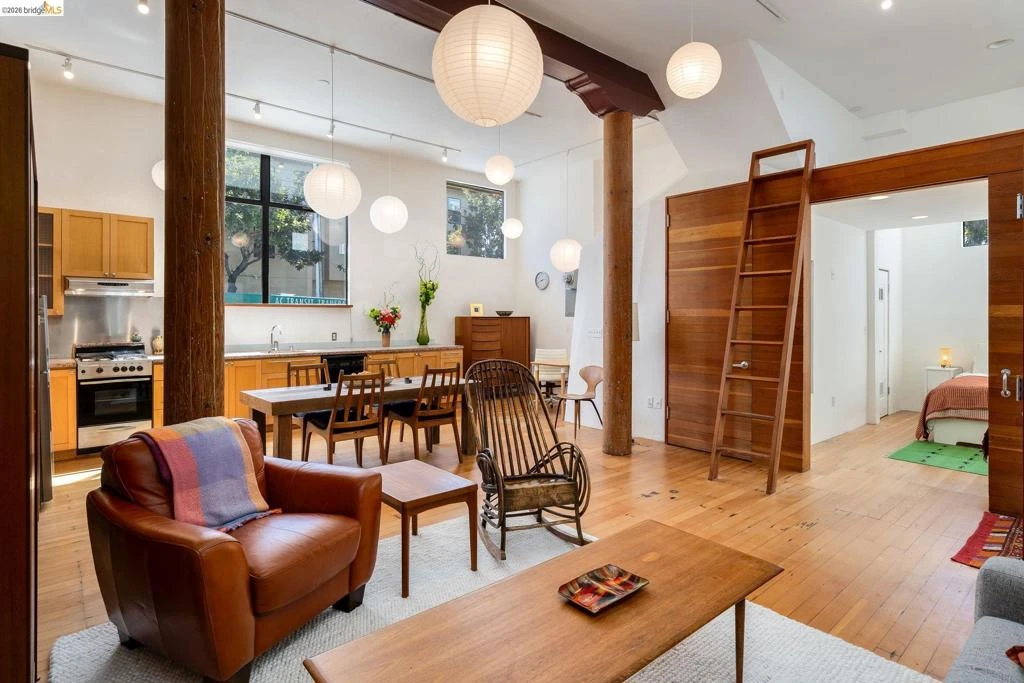 Come experience this thoughtfully designed condo located in an award-winning 9-unit community that seamlessly blends Salvaged, Recycled, and Low-Toxic finishes with a one-of-a-kind design. Step inside to a 13-foot ceiling. The expansive south-facing windows, skylight, and tall glass fill the interior with natural light. Original Douglas Fir floors and pillars, custom woodwork, and vintage Danish teak built-ins add warmth and character. The Chef’s Kitchen features maple cabinetry and unique countertops made from recycled traffic light glass. A handcrafted Douglas Fir dividing wall has a barn door to the bedroom, a 9-foot flush-hinged door to the bathroom, and an integrated ladder for access to the loft above. The artistic bathroom showcases a geometric hand-troweled finish, a whimsically crafted sink, and Vermont green slate tile. Additional highlights include In-unit Laundry, curated lighting, Solar, and a very large Exterior Storage Space. Dual-paned windows and Well-Insulated Walls provide a quiet interior, yet it's close to everything Berkeley has to offer! UC Berkeley, BART, and vibrant shops & restaurants. First time on the market since its condo conversion and redevelopment in 2001. It's an exceptional opportunity within this signature project. WalkScore 87 & BikeScore 94!