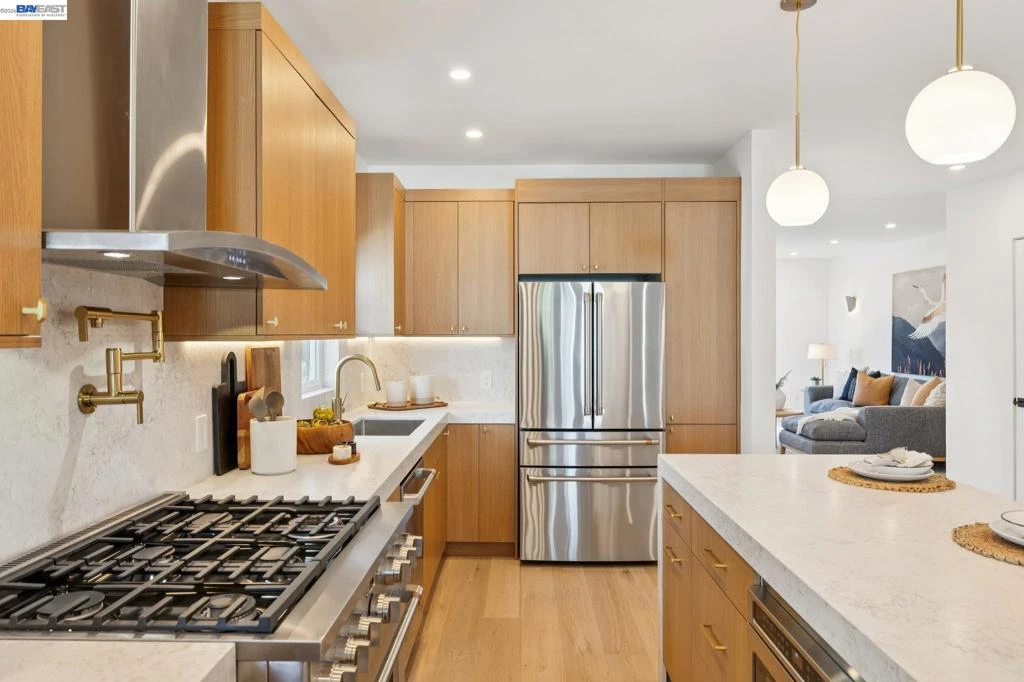 Reimagined in a modern farmhouse style, this rare Lower Elmwood compound offers flexibility, style, and opportunity across three distinct, fully rebuilt living spaces totaling 3439 square feet. Ideal for multigenerational living (main house, au pair/private office, and detached 2-bedroom guest house), income, or room to grow, the property balances connection, privacy, and ease. The main home (3BD/3.5BA, 2212 sq ft) is filled with natural light and designed for both everyday living and gathering. From the front sitting room with bay window to the dining area and into the chef’s kitchen and family room, the flow feels effortless, with oak flooring throughout. Custom cabinetry, Café appliances, and a generous island create a kitchen that is both beautiful and functional. French doors open to the backyard, extending the living space outdoors. The lower level includes a bedroom with ensuite bath, an office, powder room, and ample storage. Upstairs, two additional bedrooms include a serene primary suite with a spa-like split bath and walk-in closet, along with a second bedroom with Berkeley Hills views and a modern hall bath. Attached to the main home with its own entrance, the 1BD/1BA, 378 sq ft au pair apartment features a new full kitchen, charming covered porch for outdoor reading or morning coffee, and a modern bathroom. This space can also serve as a private office, well suited for meeting clients apart from the main home. The detached, two-story ADU (3031A Wheeler: 2BD/1.5BA, 849 sq ft) is a luxurious, full-service guest house, complete with kitchen, living area, laundry, and generous storage. It is equally well suited for multigenerational living or income. Thoughtfully updated with modern systems, the property offers added peace of mind, efficiency, and potential advantages for insurance and long-term maintenance. New improvements include zoned heat, mini-splits with A/C (in both ADUs), roof, foundation, electrical wiring and panels, windows, and more. All kitchens and bathrooms are newly built with stylish finishes and brand-new appliances. The freshly landscaped level backyard features a large, lush lawn and multiple patios, perfect for outdoor gatherings, play, barbecuing, and al fresco dining. Multiple off-street parking spaces, a custom metal privacy gate, and additional storage complete the property. All just blocks from BART, Whole Foods, Berkeley Bowl, and the best of Berkeley’s shops, dining, & culture. Sewer lateral compliant. Energy score: 7.