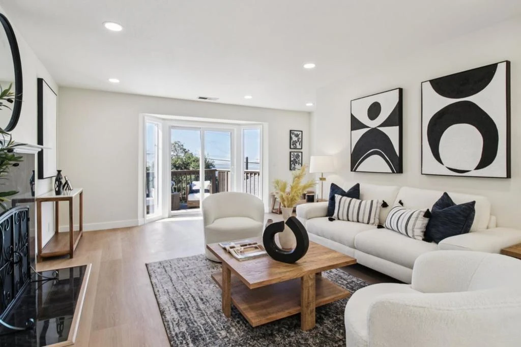This stunning fully remodeled home offers bay views and exceptional indoor-outdoor living. Renovated with high-quality finishes, it features a bright open floor plan with wide-plank flooring and recessed lighting throughout. The living area includes a sleek fireplace and opens through expansive glass doors to one of two spacious decks, ideal for entertaining, dining, or relaxing with views. The chefs kitchen features white cabinetry, quartz countertops, stainless steel appliances, and a large center island with bar seating. Well-appointed bedrooms provide comfort and flexibility, including a spacious primary suite with dual closets and a beautifully updated bathroom featuring modern vanities, illuminated mirrors, and a frameless glass shower with designer tiles. A sliding door offers direct access to the private backyard, enhancing indoor-outdoor flow. Additional bedrooms are bright and versatile with bay views, complemented by an updated hall bath with modern finishes. Move-in ready with central AC, this home blends style, comfort, and functionality. Close to Tilden Park with easy access to trails, UC Berkeley, downtown, shops, and dining.
