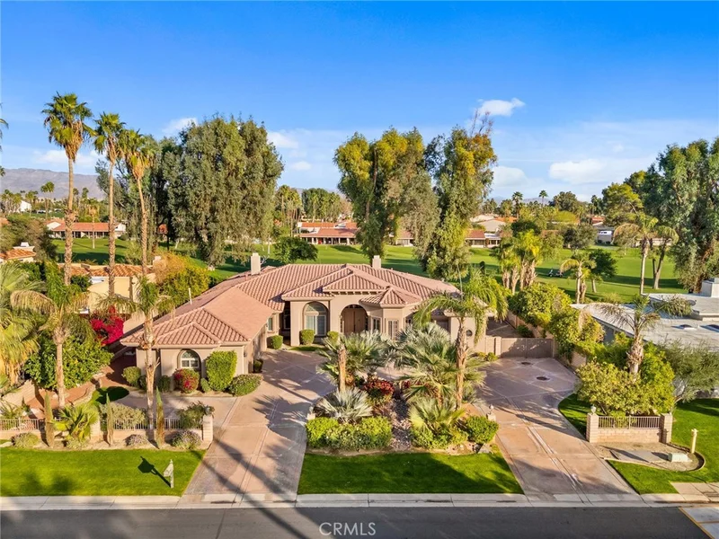 Set along the 13th fairway of Bermuda Dunes Country Club, this custom-built residence offers an exceptional blend of space, privacy, and timeless design. Built in 2006 and thoughtfully finished throughout, the home showcases quality craftsmanship with extensive travertine flooring, granite surfaces, and refined architectural details. The primary suite is a private retreat, featuring a separate sitting or fitness area with serene views of the pool and golf course. The en-suite bath includes a jetted soaking tub, oversized walk-in shower with Kohler body jets, and two spacious walk-in closets. Three additional bedrooms are complemented by a media room, great room, family room, and game room—providing remarkable flexibility for living, working, and entertaining. At the center of the home is a well-appointed kitchen that opens seamlessly to the surrounding living spaces. It features stainless steel appliances, slab granite countertops, and an oversized walk-in pantry, making it both functional and inviting. Beamed and coffered ceilings, along with expansive walls of glass, create a bright, open atmosphere and a strong connection to the outdoors. Situated on an approximately one-third–acre lot, the backyard is designed for relaxation and enjoyment, anchored by a saline Pebble Tech pool and spa with ample room for outdoor living. The HOA fee of $214 per month includes cable television with premium channels (Showtime and HBO), internet service, and 24-hour gated security—offering outstanding value for a home of this caliber. This is a rare opportunity to own a spacious, custom home on the golf course in one of Bermuda Dunes’ most established communities.