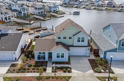 Live the ultimate waterfront lifestyle where luxury meets leisure in this exceptional like-new single story Cobalt floorplan, perfectly positioned on the lagoon with sweeping water views and a private dock just steps from your backyard. Soaring 12-foot ceilings and walls of glass fill the interior with natural light, while expansive sliding doors create a seamless connection to the outdoors—perfect for entertaining, sunset dinners, and relaxed waterfront living. The gourmet kitchen is a showpiece, featuring Bosch appliances, a stainless steel farm sink, in-island sink and dishwasher, custom wet bar, and designer lighting. The waterside owner’s suite is a serene retreat with a tray ceiling, spa-inspired bath, soaking tub, dual vanities, and an upgraded custom closet. Thoughtful upgrades include owned solar, luxury vinyl plank flooring, custom fireplace, premium window treatments, and refined finishes throughout. Outdoors, a 52-foot custom composite deck with cable railing spans the entire backyard, offering unparalleled space to entertain, lounge, or enjoy the view. Your private dock with electrical, water, and gas delivers effortless access to the Delta—ideal for boating, waterskiing, paddle-boarding, kayaking, or sunset cruises.