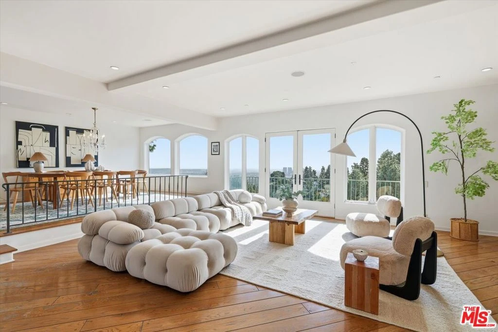 A true sanctuary of elegance and privacy, this extraordinary estate sits atop a ridge in exclusive Beverly Hills on nearly 34,000 sq. ft. of prime land, offering commanding, unobstructed views of the city below and beyond to Santa Monica and across the bay to Palos Verdes. A gated entrance and private driveway lead you to a spacious motor court and a three-car garage, setting the tone for the exclusivity within. Step inside, where timeless charm meets modern sophistication. The foyer welcomes you into an open living space bathed in natural light, with French doors framing the dazzling cityscape beyond. The living room, adorned with a fireplace, seamlessly connects to a gracious dining area, perfect for hosting unforgettable evenings. The chef's kitchen is a masterpiece of design and functionality, boasting a center island, top-of-the-line professional appliances, and a cozy breakfast nook with its own fireplace. Every culinary moment here is elevated by the serene ambiance. Descend to the lower level, where luxury knows no bounds. An inviting bedroom suite plus an additional room with custom built-ins provide both comfort and utility, but the true highlight is the magnificent primary suite. This retreat features a fireplace, dual spa-like baths, a walk-in closet, and French doors that open to the sparkling lap pool and spa; your private oasis. The top floor is an entertainer's dream, offering a relaxing family room with a fireplace, a grand built-in bar, and a deck that showcases breathtaking, glittering views of the evening's city lights. Whether hosting soires or enjoying quiet moments, this space is simply unparalleled. As if that weren't enough, a detached, nearly 500sf guest house perched above the garage provides ultimate flexibility and privacy. Complete with a private entrance, kitchenette, and bathroom, it's a perfect haven for guests or staff. Nestled above the hustle and bustle of the globally renowned city of Beverly Hills and enveloped in tranquility, this estate offers the best of both worlds: serene living and the vibrant allure of city life below. This is more than a home, it's a lifestyle of distinction.