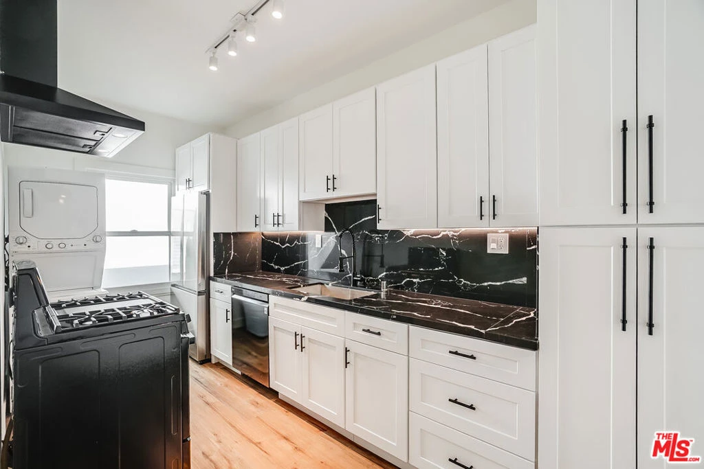 Newly renovated Mid Century Modern building in Beverly Hills. Secured formal entry with a call box and key fob. Large back-facing studio unit with tall ceilings, new floors, dual paned windows, new Mini Split Air Conditioning / Heating unit, smoothed walls, new lighting and more. Enjoy a remodeled bathroom, shower / tub combo wit newer hardware and pipes, new toilet, new sink, LED mirror, window and fan. Fully rebuilt kitchen with Steel Appliances including IN-UNIT WASHER AND DRYER, new Oven / Stove, Large Refrigerator and Freezer, Quartz Countertops, White Shaker Cabinets with soft closing drawers. Truly a beautiful unit in an impressive well-cared for building. Located within the Beverly Hills Unified School District and close to everything Beverly Hills has to offer. Easy to show. Sorry, no pets. Smoke free building. 12 month lease minimum.