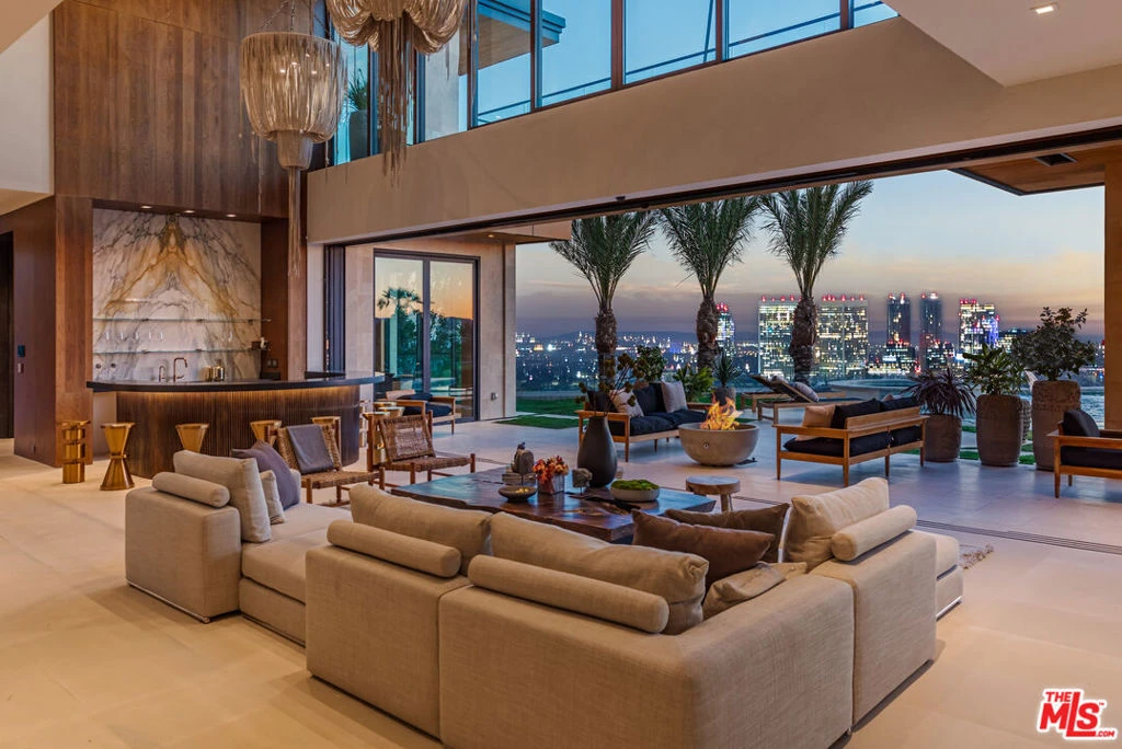 Experience ultimate luxury living in this exclusive Beverly Hills estate. This private, gated compound offers resort-style amenities on a sprawling lot. Upon arrival, you'll be greeted by a striking waterfall and lush landscaping, with ample parking for up to 10 cars. The estate features a hand-tiled Balinese pool, spa, and fire pit, complemented by stunning 180-degree city and ocean views. Enjoy outdoor dining with a full kitchen, expansive grassy yard, and sports/pickleball court. A wellness spa and gym with floor-to-ceiling glass doors open to breathtaking grounds. Inside the spacious main house, you'll find luxurious details including a great room with panoramic views, a gourmet kitchen with a 12-ft island, and a wood-paneled office with a bar. The home offers two primary suites, each with luxurious baths and terraces, plus three additional ensuite bedrooms and a vast outdoor deck. Additional features include a 2-bedroom, 2-bath guest apartment, a state-of-the-art theater, a tequila tasting room, a poker room, a 2000-bottle wine cellar, and a ~3000-sf finished garage with a glass elevator. With perfect finishes throughout, this estate is designed for those seeking an unparalleled rental experience in Beverly Hills.