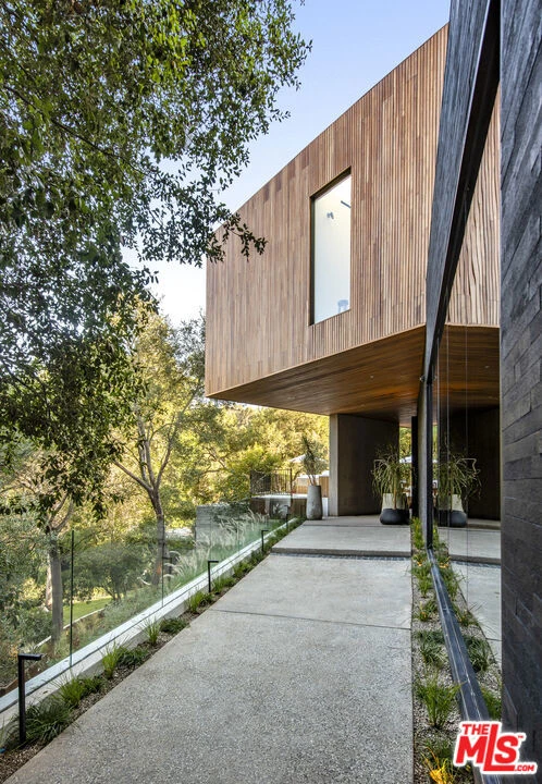 The Hutton House is a rare architectural sanctuary, where transitional Scandinavian modern design meets privacy, nature, and understated luxury in one of Beverly Hills' most coveted settings.Set behind gates on nearly an acre and enveloped by mature oak trees with tranquil canyon views, this newly constructed six-bedroom, nine-and-a-half-bath estate, interior designed by Abramson Architects, offers a level of serenity and seclusion that is increasingly difficult to find. The exterior blends warm teak wood siding with sculptural black basalt stone, softened by mature hedging that creates a true sense of arrival.Inside, soaring ceilings and expansive Fleetwood pocket doors dissolve the boundary between indoors and out, filling the main living spaces with natural light and an effortless sense of flow. Organic, bespoke finishes and carefully curated materials lend the home a calm, resort-like ambiancerefined, warm, and timeless.The heart of the home is a chef's kitchen designed for both daily living and entertaining, anchored by a striking 15-foot custom stone island, top-tier Miele appliances, an intimate breakfast nook, and an automated pop-up window that opens seamlessly to outdoor dining and lounge areas.Upstairs, the primary suite is a private retreat overlooking the canyon, featuring dual custom closets, a sculptural plaster floating fireplace, a secluded deck, and a spa-inspired bath with steam rain shower and custom birchwood sauna. A state-of-the-art gym is also located on this level, allowing for wellness and relaxation within the home's most private wing. An expansive 50+ foot skylight floods the upper level with natural light, while four additional bedroom suites extend to private outdoor decks, reinforcing the home's connection to its natural surroundings.A floating staircase highlighted by a one-of-a-kind chandelier art installation acts as both a functional element and sculptural centerpiece. Below, the lower interior level is dedicated to entertainment and leisure, featuring a tiered private theatre, temperature-controlled wine storage, and thoughtfully designed gathering spaces ideal for evenings in or hosting intimate events.Outdoors, the estate unfolds in layered fashion. The upper grounds are anchored by a zero-edge infinity pool and spa with swim-up bar, multiple fire pit lounges, and fully equipped outdoor kitchensdesigned for both large-scale entertaining and quiet moments of retreat. Below, a private outdoor lower level reveals a full pickleball court with stadium-style seating, set into lush landscaping, a grassy knoll, and handcrafted water features, creating a resort-style experience rarely found in a private residence.Additional amenities include a secondary chef's kitchen, private office with custom cabinetry, Savant-powered smart home technology, two well-appointed laundry rooms, a showcase three-car garage, and additional parking for up to ten vehicles. The residence is also offered with custom-designed indoor and outdoor furnishings created specifically to complement the home's Scandinavian aesthetic.The Hutton House is not simply a home, it is a composed and intentional environment where architecture, nature, and privacy coexist in perfect balance. A truly rare offering just minutes from the heart of Beverly Hills, designed for those who value quiet luxury, thoughtful design, and a life well lived.