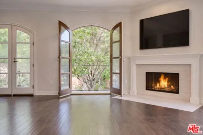 Nestled in the heart of Beverly Hills, this bright and spacious corner unit offers a seamless blend of comfort and elegance. French doors open to tranquil treetop views, filling the airy living space with natural light, while rich hardwood floors and a cozy fireplace create a warm and inviting atmosphere. Featuring 3 bedrooms, each with its own private bathroom, plus an elegant powder room, this condo offers sophisticated and convenient living. The primary suite serves as a private retreat, complete with a spa-inspired bathroom with a relaxing soaking tub and a generous walk-in closet. The thoughtfully designed kitchen is a chef's delight, appointed with Calacatta quartz countertops and high-end stainless steel appliances. Take in sweeping panoramic views from the rooftop and enjoy the convenience of an in-unit laundry room. With 3 side-by-side spaces in a gated garage, parking for you and your guests is always effortless. Combining timeless style with modern functionality, this home offers an inviting sanctuary in one of Beverly Hills' most desirable locations.