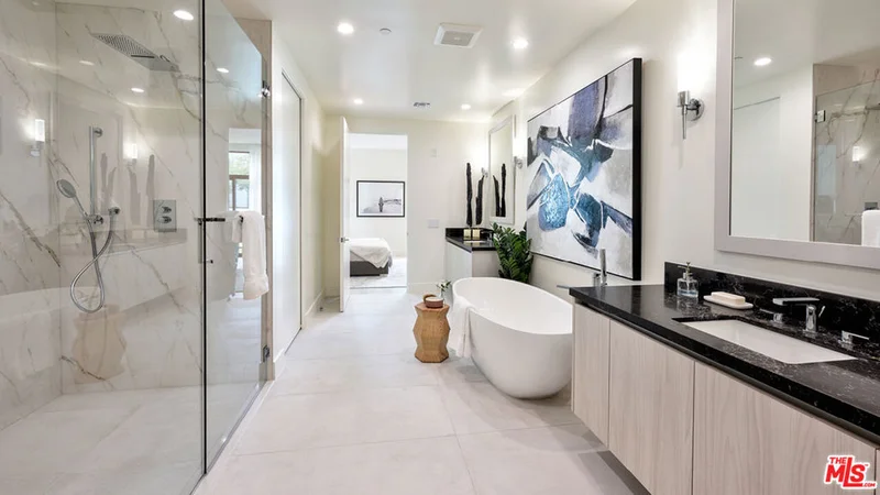 Welcome to 425 Palm in prime Beverly Hills. Residence 104 offers an expansive one-bedroom, one-and-a-half-bath floor plan with 1,752 interior SF and 1,194 exterior SF. The thoughtfully designed open-concept layout flows seamlessly from the gourmet kitchen to the formal dining and living areas, extending to an expansive patio ideal for indoor-outdoor living. Impeccably designed interior finishes feature Wolf and Sub-Zero appliances, a Miele built-in coffee system, Caesarstone countertops in the kitchen and baths, Italian Gessi fixtures, and custom imported Linea Quattro European cabinetry. Additionally, the residence offers two side-by-side parking spaces. 425 Palm provides an on-site fitness center with top-of-the-line equipment, an outdoor gourmet kitchen, wood decking with sunken spa, a dedicated lobby with 24-hour on-site staff, and controlled access.