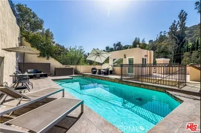 If you've seen this home before, you won't recognize it now! Sensitive cosmetic upgrades just completed enhancing an already super special 1971 custom rustic architectural Japanese Modern with 70's "mod" curb appeal. Truly a home that integrates the creative vibe of Laurel Canyon with the extraordinary convenience of being on a coveted 500 block in the westend Flats of Beverly Hills. Created for the previous owner by the noted Dorman/Munselle group, this sunlit distinctively angular home is clad (interior and exterior) in cedarwood and features super high vaulted ceilings, ridge skylights, walls of glass, wood/tile floors, and a fabulous open entertainer's floor plan. Dramatic entry foyer with gallery opens to massive dining and living spaces overlooking the grounds. Spacious kitchen/breakfast area/bar/family room. The large loft-like primary retreat encompasses the entire upstairs of the home and has a sizable gym/office/sauna along with extensive closet and bathroom space. Main living spaces and the two generous downstairs bedrooms with high vaulted ceilings all flow to the rear grounds highlighted by a six-sided polygonal pool, multiple patios, turf, and mature foliage. Direct-access 2 car garage for privacy and security along with a circular drive for off-street parking galore. Featuring a high WalkScore and located within moments to Beverly Hills' Golden Triangle and the finest Westside amenities, this is a rare opportunity for a highly-qualified long-term tenant to reside in a stunning piece of "livable" modern art.