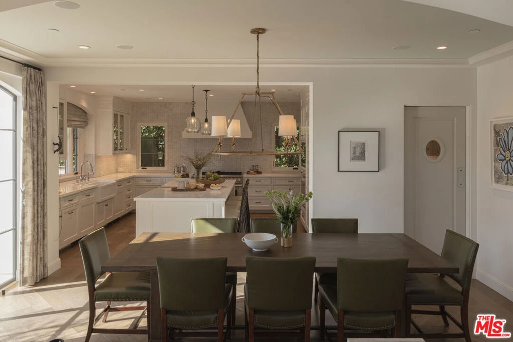 The coveted address is only the beginning of the story. Completed in early 2020, this 1926 Spanish estate underwent a comprehensive, design-forward renovation, including the addition of nearly 3,500 square feet, transforming a lovely residence into a contemporary masterpiece. The soul and character of the original home remain intact, while the aesthetics, infrastructure, and systems have been thoughtfully renewed to deliver every modern luxury and convenience. Design details include herringbone patterned European Oak flooring, wood beamed and finished ceilings, contemporary hand forged wrought iron stairwell bannisters, and perfectly balanced marble and moroccan tile accents, The entry level welcomes you with a warm foyer featuring harlequin-patterned honed marble flooring, leading to gracious formal living and dining rooms. The home's heart is the expansive family room, highlighted by double height beamed ceilings with dual iron chandeliers, opening to the center-island kitchen, supported by a dining area, walk-in pantry, mudroom, and butler's pantry. A main-level library sits adjacent to an en-suite bedroom, perfectly suited for a guest or in-law suite. There is also a powder room for the service of guests. Ascend the staircase to a gracious landing with a Juliet balcony overlooking the family room below. The primary suite is a private retreat, offering a separate office, generous dressing room, and a beautifully appointed bath with a large balcony. Two additional en-suite bedrooms, ample storage, and a generous laundry room complete the upper level. The newly added lower level is designed for relaxation and entertaining, featuring a lounge with a Moroccan tileadorned bar, luxe home theater, meditation room offering great flex space, and powder room. The nearly 1,000 s.f. guest house includes an open living area currently outfitted for as a gym, an en-suite bedroom, kitchenette, and a small laundry area. Outdoor living is equally exceptional, with covered heated patios, fireplace, built-in barbecue area, pool and spa, and an outdoor shower. With countless design details and infrastructure upgrades throughout, this is a rare, turnkey opportunity on what most regard as the best street in The Beverly Hills flats.