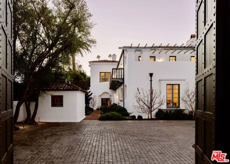 The Chimorro House (1926) Roy Seldon Price, AIA With a designation to the Beverly Hills List of Master Architects, 911 North Beverly Drive had been named for its original owner, Mrs. Chimorro, a close friend of Charlie Chaplin who courted Mr. Price to design the home before his creation of other noted landmarks of Los Angeles Writers & Artists Building, Chaplin's own studio offices (currently the dramatic space of Republique), and the private residence of Thomas H. Ince. The property has always been distinguished by its iconic "Jurassic Park" gates and was initially built in the early 20th Century and used as one of the few private Prohibition houses of the time, purportedly with a direct underground tunnel conveniently leading to the Beverly Hills Hotel, just a block away. The Chimorro Estate has previously been published in various design portfolios including C California Style Magazine and the Los Angeles Times . In its most recent half-decade, the current owner has completed a thoughtful and carefully considered restoration of the historical property, a stunning example of early 20th-century Beverly Hills Spanish Revival architecture and showcases arched walls, vintage ironwork, and hand-painted California tiles throughout. The estate lives just shy of 6500sf - features 6 bedrooms, large theater, wine room, game room and dual powder rooms. Generously scaled spaces are suited perfectly for showcasing large-format art and sculpture. A plot measuring almost a half-acre, the property also includes a detached guest house along with the former original guard gatehouse, which has since been used as a tearoom, office, and lounge. The original oversized oval pool immortalized in an early mid-century Slim Aarons photograph enjoys privacy from all three mature hedges. A spacious two-car garage sits at the other side of a courtyard with parking for 8-10 cars behind the gates.