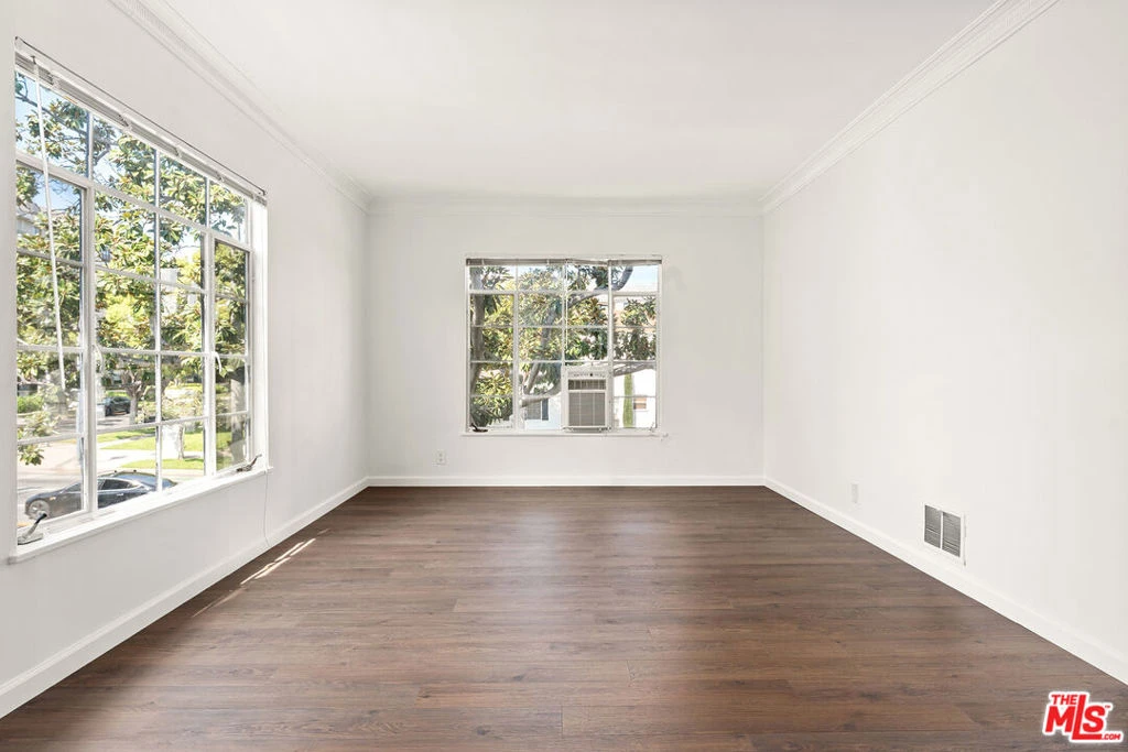 This bright upper-level 1-bedroom, 1-bath residence is set in a charming Beverly Hills courtyard building, just moments from the Four Seasons Hotel and Robertson Blvd. Filled with natural light, the home showcases crown molding, updated flooring, and stylish modern lighting throughout. The spacious living area opens to a cozy dining nook adjacent to the kitchen, which features generous cabinet storage and a convenient secondary entrance for added functionality. The bathroom has been tastefully refreshed with a sleek vanity and a full tub/shower combination. Additional highlights include one assigned parking space, on-site laundry, and water and trash included. Ideally situated near Cedars-Sinai, the Beverly Center, The Ivy, Alfred Coffee, and some of LA's best shopping, dining, and entertainment.