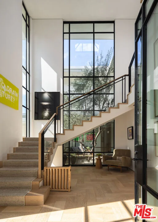 An original modernist work by acclaimed architect Charles G. Kanner, this extraordinary sanctuary has been thoughtfully updated and expanded to deliver a truly elevated living experience. Spanning 2.2 acres behind a private gated entry, the approach unfolds along a long driveway to a commanding residence positioned on Heather Road's prestigious eastern cul-de-sac, where refined amenities and forward-thinking technologies quietly enhance daily life.Arrival is marked by striking architectural canopies, setting the tone before a dramatic two-story atrium draws you into the home's primary gathering spaces. Walls of glass flood the interiors with natural light and create a seamless connection to the outdoors. At the heart of the home, a central living room is anchored by a custom built-in wet bar, while a library/theater room lined with floor-to-ceiling bookcases offers a richly layered, cozy setting. An oversized family room and dedicated office extend the living footprint further, each pairing comfortably with a private patio and access to the outdoors. An indoor-outdoor courtyard features a mature olive tree beneath a skylit canopy and flows seamlessly into the chef's kitchen and breakfast nook. Positioned at the center of the entertaining spaces, the kitchen is defined by sleek stone surfaces, custom oak cabinetry, and top-tier concealed appliances.The upper level is crowned by an exceptional primary suite, where tranquil treetop and mountain vistas wrap the room from multiple angles. A warm oak-paneled sitting room adds intimacy, along with a private balcony and serene ensuite bath - complete with a soaking tub, dual vanity, and steam shower, complemented by two generous walk-in closets. Three additional guest bedrooms complete the level, each oriented toward the home's landscaped surroundings. The residence also features a detached fitness studio that offers the flexibility to serve as a private guest retreat with its own separate entry.Outside, the experience continues at scale: an elevated pergola frames a complete outdoor kitchen with dining and lounge areas, all overlooking a beautifully positioned pool and spa. Lush landscaping surrounds the grounds, while treetop city views provide a captivating backdrop.Composed with architectural clarity and executed with the highest caliber finishes and attention to detail, this estate is also set in a prime location within top school districts, moments from Beverly Hills' premier attractions.