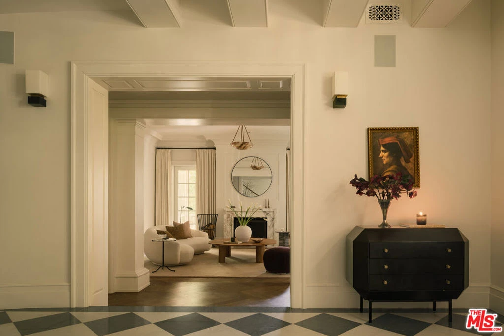 Located in the coveted guard-gated enclave of Hidden Valley Estates, this beautifully renovated French Traditional residence designed by AD100 firm Clements Design spans approximately 5,500 square feet. Privately set behind lush landscaping, the 5-bedroom, 6-bathroom home blends timeless architecture with modern comfort. The custom kitchen features a La Cornue range, built-in Miele coffee system, and a Carrara marble island that opens to the formal dining area. A sunlit, west-facing breakfast nook flows into a serene outdoor seating space surrounded by mature greenery, stonework, a koi pond, and multiple water features. Custom marble floors lead to the formal living room with a stunning wood-burning fireplace and an adjacent newly built screened porch outfitted with electric heaters. A spacious family room with handcrafted shelving, generous storage, and a sleek bar equipped with a wine and beverage fridge and icemaker offers a versatile space ideal for entertaining or relaxed lounging. A cozy en-suite bedroom completes the main level. The upper level, accessible by two separate staircases, offers four beautifully appointed en-suite bedrooms, including a luxurious, oversized primary suite with a sitting area, private balcony, and generously sized walk-in closet. The park-like grounds feature a 40-foot swimming pool, two fire pits, and multiple seating areas across over 13,000 square foot lot delivering a private, verdant landscaped retreat that perfectly embodies refined California living. First time offered in over a decade, this is a rare opportunity combining exceptional design, tranquility, and one of the most sought-after addresses in the area.