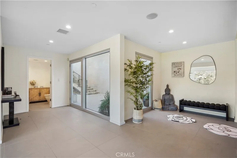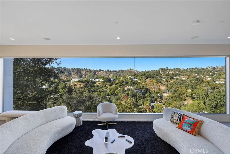 ANOTHER HUGE PRICE IMPROVEMENT! Suspended above the city within one of Beverly Hills’ most exclusive, celebrity-favored gated enclaves, 9716 Oak Pass Road is a striking contemporary estate offering exceptional privacy, architectural distinction, and breathtaking panoramic views. The community is gated, and the residence itself is further secured behind its own private gate and drive, creating a rare and dramatic sense of arrival. Spanning approximately 6,244 square feet across three dramatic levels, this modern sanctuary is wrapped in walls of glass that capture canyon vistas from nearly every room, delivering a seamless indoor-outdoor lifestyle throughout. A signature architectural highlight is the glass-enclosed skybridge hallway suspended above the infinity-edge pool, serving as a sculptural centerpiece on the main level and elevating the home to true statement-level design. The residence offers a total of four bedrooms, including an expansive and private primary suite retreat with commanding views, oversized walk-in closets, and a spa-inspired bath. Three additional guest bedroom suites provide exceptional comfort and privacy. Designed for both refined daily living and elevated entertaining, the home features a gourmet chef’s kitchen, sophisticated formal and informal living areas, a private executive office anchored by a dual-sided fireplace, and a dedicated private theatre/media room. Multiple view terraces and decks extend the living experience outdoors, while the floating infinity-edge pool appears to merge with the skyline, creating a resort-style setting high above Beverly Hills. Set among notable neighbors within an elite and discreet hillside enclave, this exceptional contemporary residence delivers a rare combination of privacy, prestige, and iconic architecture on one of Beverly Hills’ most coveted streets.