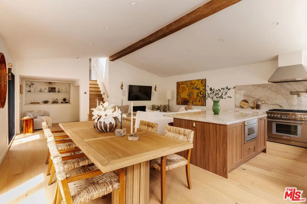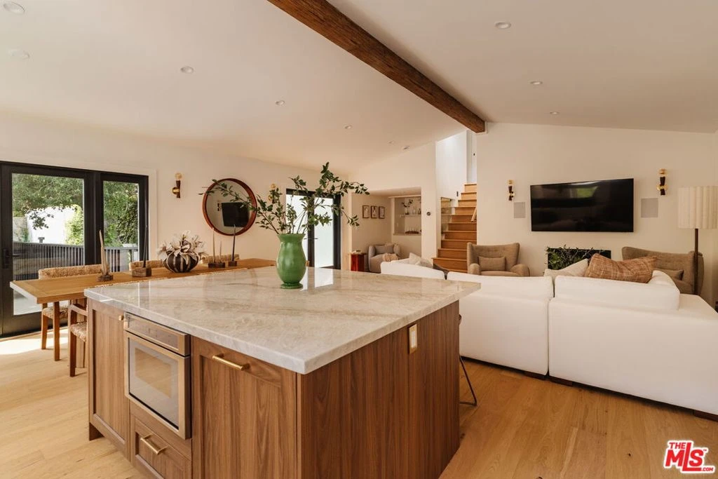 This designer built 3 bedroom, 3 bath contemporary home is tucked away in the coveted Beverly Hills Post Office, offering privacy, thoughtful design, and modern functionality. Fully remodeled down to the studs, the home features a seamless open layout where the chef's kitchen, complete with Thermador appliances and Brazilian quartzite countertops, flows effortlessly into the living space and out to an inviting deck, ideal for indoor outdoor living. Bathrooms are finished with Italian marble and refined brass fixtures, while the primary suite offers abundant natural light and a spa like bath with a tranquil outdoor outlook. Two additional bedrooms include a well appointed guest room and a separate lower level suite with a private entrance and ensuite bath, offering flexibility for guests, a studio, or workspace. Surrounded by canyon greenery, the outdoor spaces include multiple areas for dining and lounging, creating a quiet retreat just minutes from Beverly Hills, the Beverly Hills Hotel, and Rodeo Drive. Additional features include a two car garage and rare off street parking.