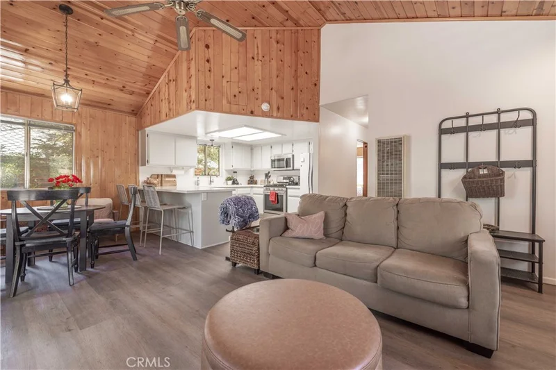 Remodeled Mountain Getaway with Treehouse Vibes! Tucked in a prime Big Bear location, this beautifully updated retreat blends mountain charm with modern comfort. The remodeled kitchen opens to a spacious and airy floor plan, creating a seamless flow that's perfect for relaxing or entertaining. Both generously sized bedrooms are located on the main level, making single-story living a breeze. Step onto the expansive wraparound deck that feels like it floats in the treetops—ideal for morning coffee or evening gatherings with friends. This home is a serene escape with inspiring design touches throughout.