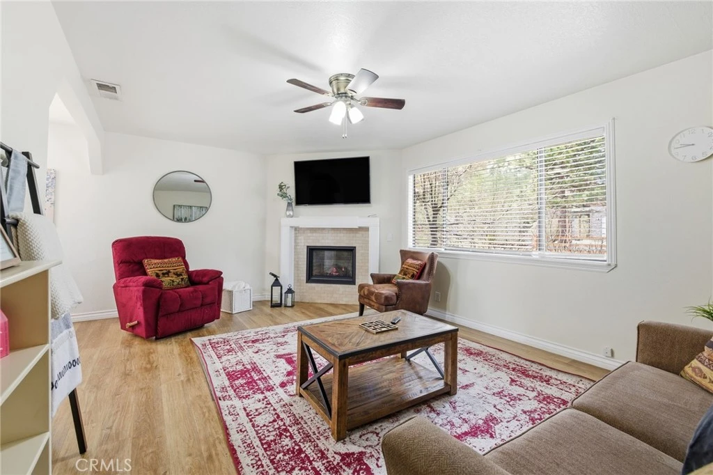 Welcome to this charming 2-bedroom, 1-bath Sierra-style mountain cabin in the heart of Big Bear City, offering approximately 1,000 sq ft of living space on a 5,250 sq ft level lot. Step inside to a home that feels light and inviting, featuring newer flooring throughout, a newer gas fireplace for cozy mountain evenings, and a newer roof. Washer and dryer hookups are conveniently located inside the home, and the two generously sized bedrooms provide comfortable accommodations for family, guests, or vacation renters. Outside, the property truly shines. The fully fenced backyard, surrounded by beautiful, mature pine trees, offers a rare sense of privacy and tranquility—perfect for relaxing or entertaining. A large storage shed provides ample room for mountain toys, bikes, and gear, while the paved driveway offers plenty of parking. In season, the front yard features an apple tree and grapevines, adding charm and a true mountain-garden feel. Currently used as a vacation home and Airbnb, this property presents an excellent opportunity for investors, second-home buyers, or full-time residents seeking both lifestyle and income potential. Its layout, location, and outdoor setting are highly appealing to guests looking for an authentic Big Bear experience. Conveniently located near Big Bear Lake, ski resorts, hiking and biking trails, boating, fishing, off-roading, dining, and local shopping, this home offers easy access to four-season recreation while still feeling peacefully tucked away in a quiet, natural setting. A rare opportunity to own a property that blends privacy, comfort, charm, and income potential—this is Big Bear living at its best.