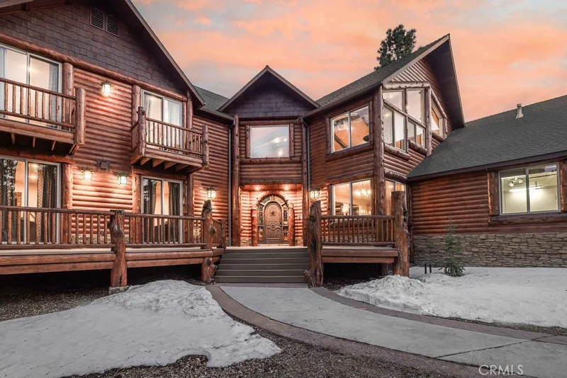Set on over an acre in the highly sought-after Meadowbrook Estates, this custom log-style retreat offers the space, privacy, and craftsmanship that define true mountain living. Inside, soaring ceilings and rich log accents create an impressive yet inviting atmosphere, while expansive windows frame the surrounding forest and bring natural light into the open living spaces. The thoughtfully designed floor plan flows effortlessly for both everyday living and entertaining, centered around a chef’s kitchen ideal for gathering with family and friends. Upstairs you'll find an expansive open loft style game room with a full bar, the perfect setting for cocktails, games, and relaxed evenings. Multiple fireplaces throughout the home add warmth and ambiance, including within the primary suite featuring a private sitting area, spa-inspired bath with soaking tub, walk-in shower, generous walk-in closet, and its own private deck. The home features three additional bedrooms, including a second suite with fireplace and private balcony making it the ideal for guests. Step outside to soak beneath the stars in the outdoor spa and take in the peaceful mountain setting that surrounds the property. Car enthusiasts and hobbyists will appreciate the expansive five-car garage, offering ample space for vehicles, recreation gear, and storage. Located just minutes from the heart of Big Bear Lake yet tucked away in one of the area’s most desirable neighborhoods, this property delivers both convenience and tranquility. Adding even more opportunity, the neighboring 1.2-acre parcel is also available for purchase - offering the rare chance to expand your privacy, build, or secure additional space in this premier setting.