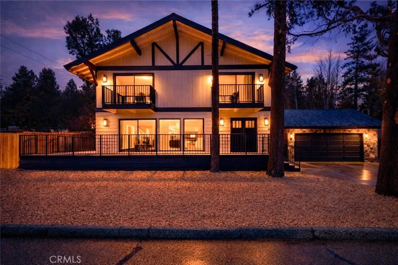Fully renovated luxury mountain retreat just minutes to the slopes, Big Bear Lake, and The Village! This professionally designed 2,660 sq ft home offers 4 bedrooms, 3.5 baths, and a 2-car garage with brand-new systems throughout including HVAC, roof, water heater, electrical, insulation, and windows — offering lasting quality and comfort. High-end finishes include premium appliances, designer fixtures, and custom hardware. The spacious chef’s kitchen features a walk-in pantry, bar area, and wine fridge, perfect for entertaining. The primary suite boasts a private balcony with mountain and ski slope views, spa-style ensuite with double vanity, and walk-in closet. Three additional bedrooms include one with a private balcony and one with its own half bath. Bright great room with wall-to-wall windows, tongue-and-groove ceilings, original wood beams, and stone fireplace. Glass doors open to a wraparound deck, new hot tub, fenced yard, RV/boat parking, and ample space with potential for additional guest accommodations or flexible use, subject to local regulations.