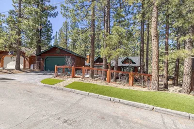 Nestled among towering pines on a quiet cul-de-sac, this beautifully updated log-sided cabin offers the perfect blend of mountain charm and modern comfort. Featuring 3 bedrooms and 2 baths, this home welcomes you with beautiful natural light, high ceilings, a stunning stone fireplace, and warm, inviting living spaces. Enjoy peaceful outdoor living with a spacious front porch, large patio with pergola, rear deck, and fully fenced yard—ideal for relaxing under the trees or entertaining. Thoughtfully updated throughout, new luxury vinyl plank flooring, new kitchen appliances, quartz countertops, stainless steel sink, updated bathrooms, lighting, new gas furnace and water heater, whole house exhaust fan, new washer/dryer, upgraded 200 AMP electrical panel and more. Recent exterior improvements include decking, concrete walkways, cedar pavilion, beautiful new trees and landscaping with drip irrigation. Located just minutes from Big Bear Lake, the Village, dining, and other activities including Oktoberfest, Snow Play, and more. Lovingly maintained and never used as a rental, this home also presents a fantastic opportunity for future rental income. Whether you're looking for a weekend escape or full-time retreat, this cabin captures the essence of mountain living.