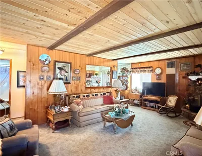 Welcome to this cozy, charming 2-bedroom, 2-full-bath country cabin in Big Bear City. The original owners are selling their very well-maintained home in this quiet neighborhood within walking distance to the Big Bear Lake Convention Center. When you enter the cabin you can feel its warmth, enhanced by wood-beamed ceilings, a rock fireplace, and an oversized mantle. You can enjoy cooking for your family in this nicely sized kitchen with a dining area. The home sits on fully fenced, flat land with 2 separate driveway entrances and an attached finished garage. The sellers added a second bathroom including a walk-in shower, new floors and nice lighting and mirror. The home sits on a large corner lot with enough concrete parking for 6 or more cars, featuring two separate drive-in areas, both with rolling gates. The covered front patio extends the length of the home and is a great place to sit and relax under the trees. The home is minutes from town for avid skiers and has a side yard with plenty of room for pets and a shed for extra storage. Don't miss out on this adorable, well-maintained home; all you have to do is move in and enjoy.