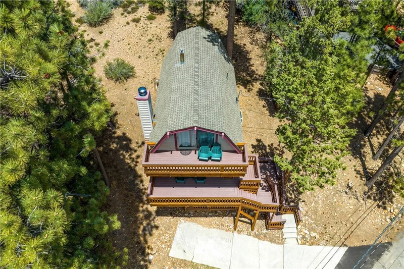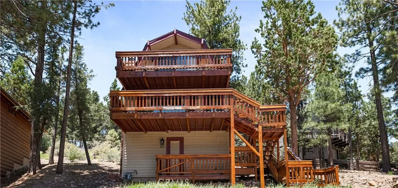 Escape to the mountains and indulge in the ultimate cabin retreat! This beautiful Big Bear cabin is located in Whispering Forest, one of the highly desirable neighborhoods in Big Bear City. This 3-bedroom, 1-bathroom cabin is nestled in a quiet neighborhood surrounded by soaring pine trees, beautiful views of neighboring cabins, and peak-a-boo views of Snow Summit and Bear Mountain Ski Resorts. Located on an 8,960 sq ft lot, this home offers privacy and seclusion while still being minutes away from the lake, ski resorts, hiking trails, boat ramp, and The Village (Big Bear Lake's hub for dining, shopping, and entertainment). The open-concept layout of the living room and dining area makes this cabin very comforting and inviting. The cabin features a big-picture window that offers a panoramic view of nature day in and day out. The kitchen has new countertops and modern tiles that truly complement the rustic feel of the cabin. The fireplace has been updated and it features a wall-mounted remote that creates a warm and welcoming ambiance, any season of the year. The laundry area is located on the main floor which is very accessible. This cabin has a newly installed A/C which is a major plus since only a few cabins in Big Bear have a central A/C system installed. The main floor already offers a lot to see but there is more to explore on the second level where the 2 spacious bedrooms are located, with one of the bedrooms having a private balcony. This cabin epitomizes mountain luxury and the perfect escape from city life. Don't miss this incredible opportunity to own a mountain cabin with breathtaking views.