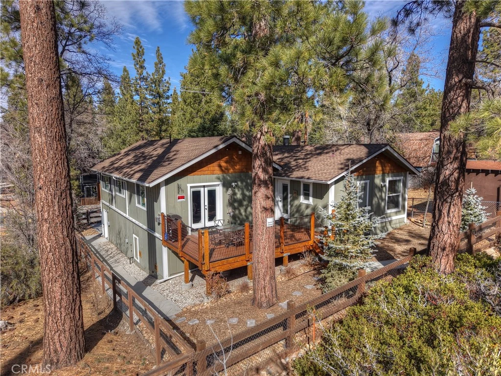 Welcome to 42527 Willow Avenue, your gateway to the San Bernardino National Forest ~ Tucked away in the Lower Moonridge neighborhood of Big Bear Lake, this turnkey, 3-bedroom, 2-bathroom custom home has a lot to offer ~ A perfect mountain getaway, this spacious retreat features a large open-concept living area ideal for unwinding after a day on the slopes, or the trails that are right out your back gate ~ Natural light pouring through large windows, framing peaceful forest views ~ Backing directly to the San Bernardino National Forest, the home offers immediate access to hiking and biking trails ~ A serene, wooded setting gives the feeling of seclusion ~ Step outside onto the rear Trex deck to enjoy summer evenings, snowy mornings, and tranquil nature views in every season ~ The kitchen features granite countertops, and flows seamlessly into the main living and dining areas, creating an ideal layout for entertaining and everyday living ~ Comfort and functionality are elevated throughout this home ~ Gas fireplace in the dining room ~ Napoleon GD 20N cast iron stove in the master bedroom ~ Forced heating and air conditioning ~ A 200-amp electrical service with surge protector ~ Dual-pane windows throughout ~ Italian tile flooring with wood grain look and feel ~ A skylight in the master bathroom ~ French doors from the master bedroom to the rear deck ~ Tankless water heater ~ Copper Plumbing ~ Drip irrigation for landscaping ~ Attached 2-car garage pre-wired for two EV chargers ~ Perfectly located just minutes from Bear Mountain Ski Resort, Snow Summit Ski Resort, the Bear Mountain golf course, Big Bear Lake, the Big Bear Alpine Zoo, and the Moonridge Corridor ~ A short ride to the Big Bear Lake Village for shopping, dining, and year-round events ~ This exceptional property is ideal for full-time living, a second home, or your next investment in the mountains ~ Dont miss 42527 Willow Ave.