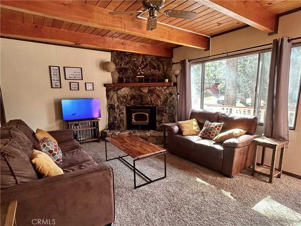 Beamed Ceilings, Ceiling Fans, Separate Formal Dining Room, Eat In Kitchen, Furnished, Living Room Deck Attached, Pantry, Stone Counters, Storage, All Bedrooms Up, Primary Suite