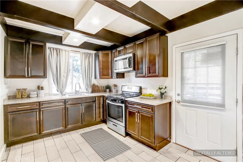 Cozy Big Bear home on a Large Lot! Welcome to this charming 2 bed, 1 bath mountain retreat offering 789 sq ft of living space on a spacious 12,051 sq ft lot. Featuring vaulted ceilings, exposed beams, a cozy fireplace, and an updated kitchen with stainless appliances, this home is perfect as a full-time residence, weekend getaway, or short-term rental. Enjoy the peaceful setting from the covered deck surrounded by pine trees, with plenty of room for outdoor entertaining, parking, and future expansion. Conveniently located near Big Bear Lake, ski resorts, hiking trails, and the Village. A great opportunity to own in Big Bear! Some images in this listing have been digitally altered.