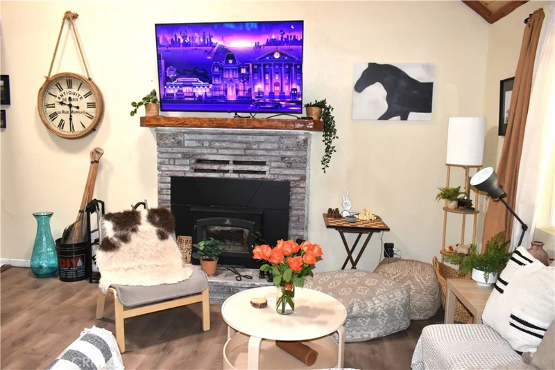 Welcome to your dream mountain escape! This charming 2-bedroom, 1-bathroom home in Big Bear Lake has been fully renovated with 1 extra non permitted bathroom, with all the upgrades you could want. Tucked in a prime location just minutes from Big Bear Boulevard, you're perfectly positioned near the lake, top ski resorts, hiking trails, and amazing local restaurants. Whether you're cozying up by the fireplace after a day on the slopes or enjoying your morning coffee with mountain air and sunshine—this home has it all. Don’t miss your chance to own a slice of Big Bear magic. Homes this stylish, this close to everything, don’t last long—come see it before it's gone! -- BIG PLUS a NON-PERMITTED little escape house in the back yard perfect to turn it into a small retreat home or mancave, suitable as a vacation home or AirBnb. Buyer and buyer’s agent to verify all information to their satisfaction, including but not limited to square footage, permits, zoning, and property condition. ***Most furniture is included as part of the sale, making this a truly move-in-ready opportunity***