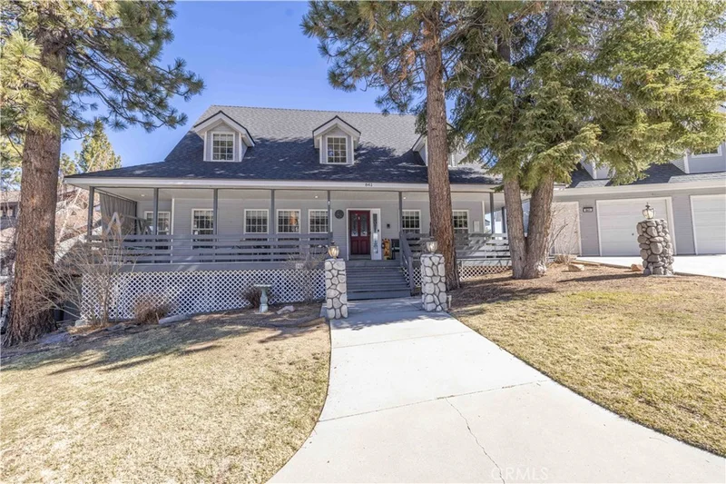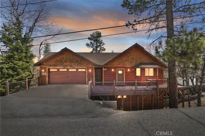 Located above Big Bear Village on a desirable corner lot, this spacious mountain retreat offers approximately 2,482 sq ft with 5 bedrooms and 2.5 baths in the main home, plus a separate ADU above the two-car garage. The ADU features a private entrance, full bathroom, sink, mini fridge, and its own deck with views of Big Bear Valley and Gold Mountain—providing flexible space for guests, extended family, or potential rental use. Inside the main home, warm wood ceilings, fresh interior paint, updated lighting, and thoughtfully designed feature walls create inviting living spaces that feel both comfortable and full of mountain character. The layout offers room for gathering, relaxing, and hosting, whether it's a cozy winter weekend by the fire or a summer getaway with friends and family. Multiple wraparound decks extend the living space outdoors, offering peaceful spots to enjoy morning coffee, mountain air, and peek-a-boo valley views. Situated on a 7,900 sq ft lot, the property is within walking distance to Big Bear Village where restaurants, shops, coffee spots, and local events bring the community to life year-round. The location also offers convenient access to the lake, ski resorts, and nearby hiking trails. Additional features include dual washer and dryer hookups (garage and main house) and a two-car garage. With generous space, flexible living options, and a location close to the Village, this home offers the opportunity to enjoy the best of Big Bear living.