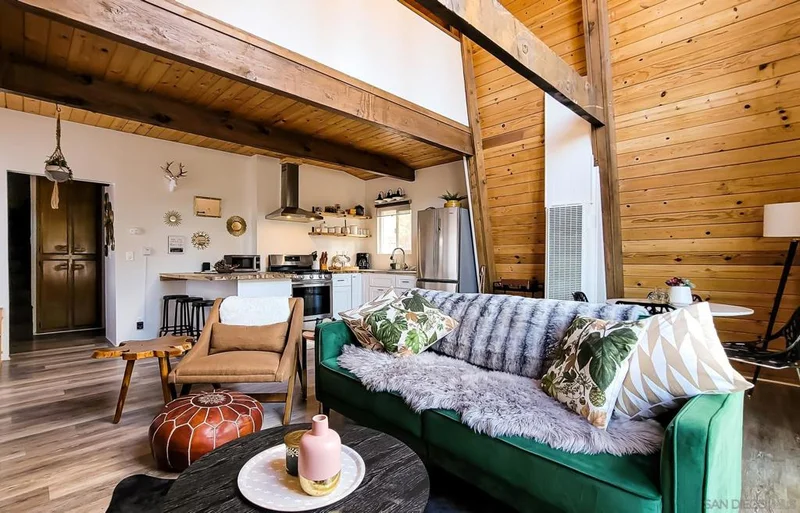 FULLY FURNISHED! Just off Big Bear Blvd. on a 0.75-acre lot you will find Lucky Bear Cabin a charming and beautifully updated 2-bed, 1 -bath gambrel-style cabin with 1,095 square feet of living space and an expansive raised deck. This mountain retreat is move-in ready, fully furnished, loaded with thoughtful upgrades. Over the past 4.5 years, the current owner has made significant improvements, including: a new 50-year life metal roof, Upgraded/Replaced electrical panel and several dedicated outlets, string lights on a dimmer, Dual-pane windows and replaced patio sliders, Replaced water heater, wall heater, and thermostat, Fully remodeled kitchen with stainless steel appliances, a black composite granite sink, and modern finishes Drywall and upgraded insulation for enhanced energy efficiency, Partially updated bathroom, Luxury vinyl plank flooring downstairs, 18,000 BTU mini-split AC and heat unit installed in the loft, Radiator in downstairs bedroom, Installed electric & chandelier in the main living space, Asphalt Driveway was replaced, Installed easy to access water shutoff (close to entryway- by licensed plumber) Blink Security Camera System, Television in Livingroom. from Big Bear Blvd. turn on Iris, just after Johnny's ski-shop. Note. This is an active short term rental. Step outside to enjoy a freshly refinished deck treated with Cabo Deck Correct and replaced deck railing, a newly poured walkway and concrete slab leads you to the newly installed 4 person-spa. Deck features a BBQ, Firepit, cooling box, storage and a seating group. The property also includes a lockable storage area under the house, ideal for tools, gear, or seasonal supplies. This fully furnished cabin is stocked and ready for enjoyment with lots of extra linens, towels, kitchen supplies and even Christmas decor. Included are a foosball table, game closet, projector and screen, and outdoor games for all-season fun and relaxation. Fire place in living room for those cold nights featuring a stunning antique stained glass cover. Whether you’re looking for your forever home, serene second home or a high-potential short-term rental, Lucky Bear Cabin is a rare find that combines rustic charm with modern comfort. Schedule your tour today and experience the magic of Lucky Bear Cabin for yourself.