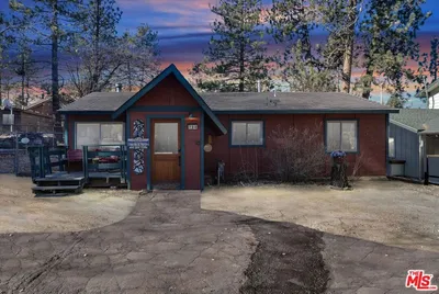 What better location for a vacation rental/weekend getaway then the Summit Estates area of Big Bear Lake neighboring Snow Summit Ski Area Resort! A year-round resort with Winter snow sports like skiing/boarding/tubing and a Summer gathering for mountain biking, hiking and scenic chair rides. First house at the top of the street on St. Moritz Dr., just below Switzerland Dr, a snowball toss to the resort. This is a very sought after location in Big Bear Lake. Situated on a large flat level fenced lot, the expansion possibilities are there to be realized. Circular paved driveway brings you in with room for boat or RV parking on site. Classic Sierra style architecture offers an open floor plan. This cabin is turnkey and ready to go. Cute front porch with wrap around built in seating. Enter thru the wooded "mud room" for seasonal convenience. Ample sized living room with tasteful furnishings throughout. Dining area with corner windows offering light and vistas. Lovely antique table and chairs with room to seat 6. Updated kitchen offers a breakfast bar with seating, granite counters, stainless appliances, & pantry. 2 spacious bedrooms with queen beds. Both bathrooms are lined with pecky cedar for a rustic feel. Lovely solid wood mahogany interior doors and wood ceilings throughout the home. Forced air central heat to keep everyone nice and toasty. Washer/dryer hookups in the stackable closet off the hallway. Exit sliding glass door to back yard open concrete patio with seating and BBQ. Fully fenced rear yard with raised deck and outdoor spa. Raised deck has built in seating and room for dining, as well as a bubbly spa/hot tub. This is an excellent investment opportunity to own a home in a year-round resort, that has the potential to pay for itself, as well as generate income. Just in time for the coming Winter Season.