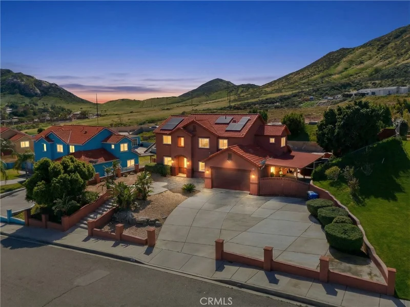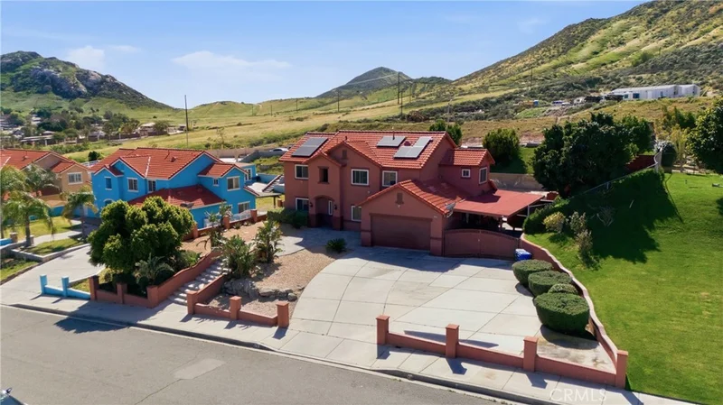 Welcome to this beautiful Mediterranean-style home at 11970 Walnut St. in the heart of Bloomington. Built in 2004, this spacious 2,738 sq. ft. residence sits on a nearly half-acre lot and offers a rare combination of mountain views, modern comfort, and expansive outdoor space. With 5 bedrooms and 4 full bathrooms, the thoughtfully designed layout is ideal for multigenerational living. The main level features a bright living room filled with natural light, a private primary suite with granite countertops, two additional bedrooms with a shared dual-sink bathroom, and an indoor laundry room with direct access to the attached two-car garage. Upstairs offers an open-concept kitchen with granite countertops and abundant cabinetry that flows into a spacious family and dining area with tile flooring—perfect for everyday living and entertaining. Two oversized upstairs bedrooms each include their own private full bathroom, providing excellent separation for next-gen living arrangements. Step outside to a massive backyard with a large covered patio and terraced access to an elevated portion of the lot with sweeping mountain and city views—offering potential for an ADU, outdoor retreat, or additional entertainment space. The home also features solar, helping improve energy efficiency and reduce utility costs. Additional highlights include rear gated access, an extended driveway, and RV parking. Don’t miss this unique opportunity to own a spacious home with incredible potential—schedule your private showing today.