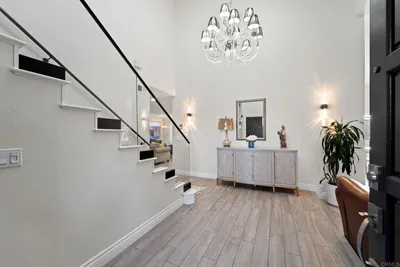 Welcome to this stunning custom rustic Spanish-style home, located on a quiet cul-de-sac in one of Bonita’s most desirable neighborhoods. This 5-bedroom, 3-bathroom home has a detached casita with its own bathroom and kitchenette—perfect for guests. Thoughtfully enhanced throughout, the home features dual-pane windows, updated wood and tile flooring, remodeled bathrooms, smooth textured walls, and added ceiling and closet lighting. Other upgrades include solar panels, HVAC, plumbing, water heater, whole house fan, garage doors, fencing, gates, retaining wall, refreshed landscaping, and added irrigation. Additional touches include custom interior wood doors, closet organizers, and French doors. Enter through distinctive front doors into a welcoming family room centered around a cozy fireplace. The kitchen, with stainless steel appliances, concrete countertops, and generous cabinetry, flows seamlessly into the living area with its own fireplace. Expansive accordion-style doors open to the backyard, creating effortless indoor-outdoor living. A main-level full bathroom adds convenience. Upstairs, you'll find the remaining bathrooms and bedrooms including a spacious primary suite with fireplace, private balcony, and en-suite bathroom—ideal for relaxing at the end of the day. The backyard is designed for entertaining, with a saltwater pool with pebble tec, BBQ island, and a large grassy area. Additional highlights include a dedicated laundry room, 3-car garage, ample driveway parking, and potential to expand with an additional primary suite. This home offers a perfect blend of comfort, style, and lifestyle. Don't miss out on this home!