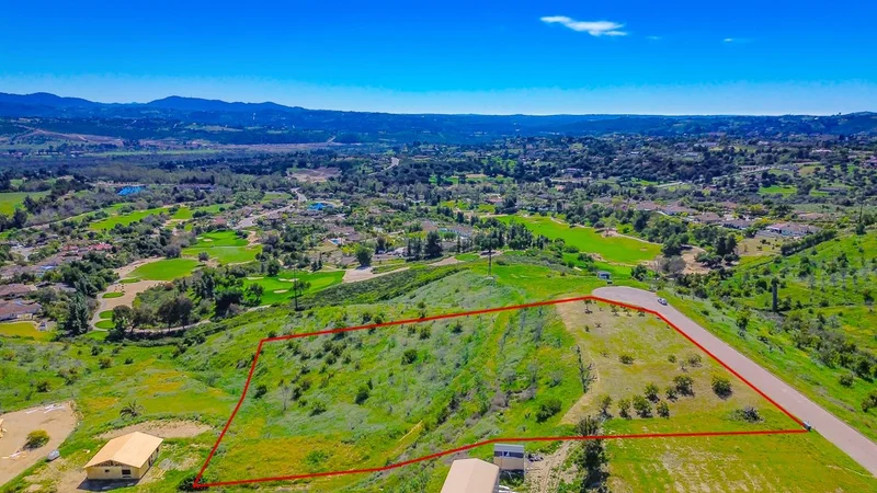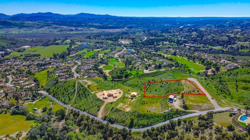 This piece of land is the ideal setting for your dream estate. At 2.35 acres with a 220° view of San Luis Rey Valley with no chance of obstruction this is the last great view lot in the area. The Golf Club of California is a 6 minute drive away, the award winning Monserate Winery is a 4 minute drive, the 76 is a quick 5 minute drive with only 12 miles till you hit the coast, all of this gives you a dream location in the heart of North San Diego County Wine Corridor. This is a must see not only for the incredible view, but to let your imagination run wild with the endless possibilities.
