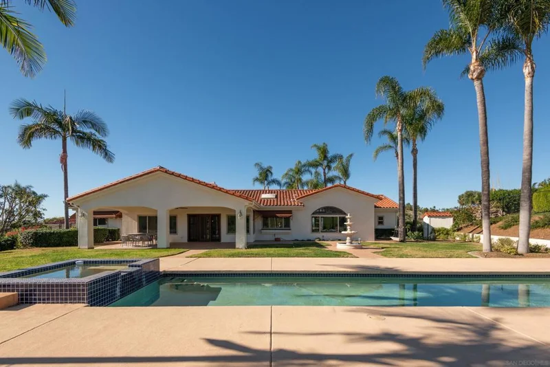 Set atop a hill on 3.06 acres in the heart of horse country, this Mediterranean estate in coveted Hialeah Estates enjoys sweeping 360-degree views of rolling countryside and coastal breezes. Just 2.7 miles from the San Luis Rey Training Center, the property was designed to celebrate its extraordinary setting, with expansive windows and effortless indoor-outdoor flow to a backyard retreat complete with pool, spa, and lush landscaping framed by palm trees. The inviting floor plan offers formal living and dining rooms, three bedrooms on the main level and a secluded primary suite in its own upper wing, while the open-concept kitchen, breakfast area, and family room with fireplace create a warm hub for both relaxed living and stylish entertaining. Additional amenities include a refrigerated wine room, an attached three-car garage, and a detached two-car garage—delivering a perfect balance of elegance, comfort, and functionality in a truly breathtaking location.