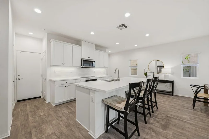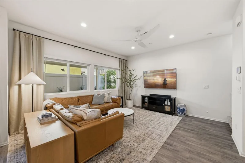 Experience contemporary living in this stunning 2-story detached home, ideally located on a quiet cul-de-sac in the newly built Fairview community. Boasting 4 bedrooms plus a large loft that can easily convert into a fifth bedroom, this 1,872-square-foot home offers both space and versatility for modern lifestyles. Designed for efficiency and comfort, the home features fully paid solar panels, dramatically reducing electric costs, while low HOA fees and no Mello-Roos add to the appeal. Enter to enjoy white quartz countertops, under-cabinet lighting, a custom backsplash, ceiling fans in the living room and each bedroom, and a smart home camera system that blends convenience and security. The backyard has been thoughtfully upgraded with a patio cover featuring fans and lighting, low-voltage landscape lighting, an automated drip irrigation system, concrete slab with additional drainage, a pathway from the driveway, and a retaining wall with planter—perfect for entertaining or relaxing outdoors. The attached 2-car garage is equipped for modern living with hardwired lighting, two EV chargers, a screen-off garage door, overhead metal storage, and wall-mounted storage cabinets. Additional features include a screen-off front door and rain gutters. This home combines modern style, smart upgrades, energy efficiency, and outdoor living in one turnkey Fairview property, ready to enjoy today.