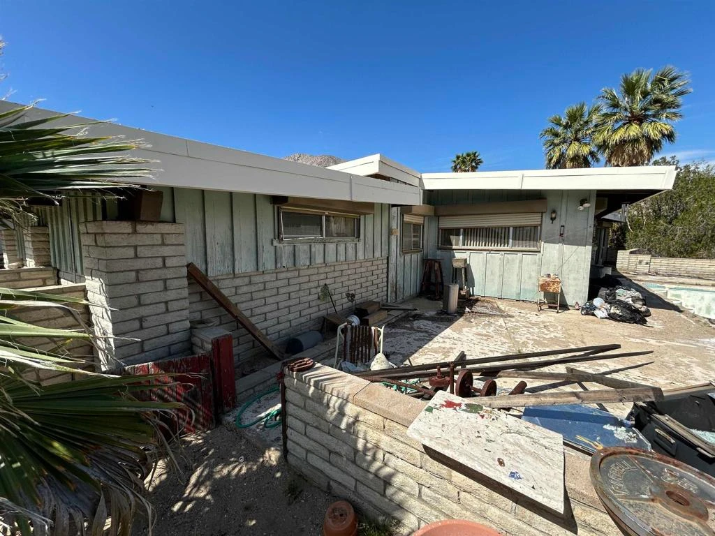 Welcome to a rare opportunity in the desirable De Anza Golf Estates. This single-story home is situated on a large, spacious lot that backs directly onto the golf course, offering peaceful views and a relaxing desert atmosphere. The property features 2 bedrooms and 2 bathrooms, along with a detached 2-car garage that provides ample parking, storage, or workshop potential. The home is in need of significant work, making it an ideal project for an investor, contractor, or buyer with vision looking to create a personalized desert retreat. With its prime location, generous lot size, and direct golf course access, this property offers outstanding potential for those ready to bring new life to it.