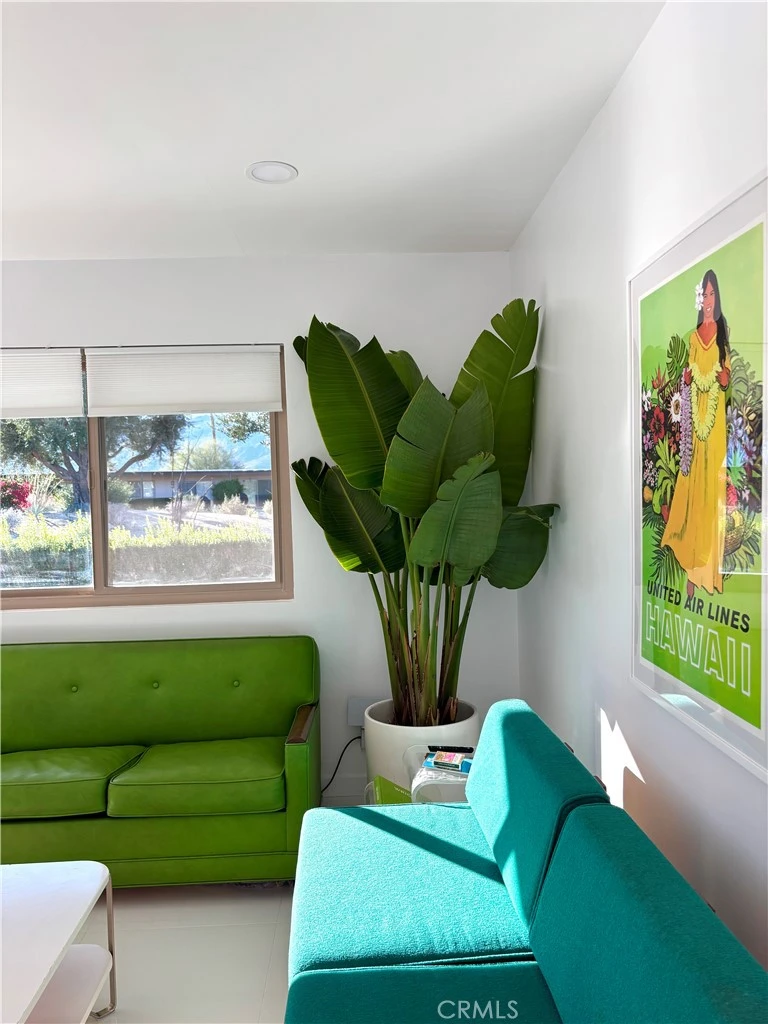Exceptional Mid-Century inspired remodel—absolutely stunning from every angle. This beautifully updated end unit captures sweeping views of the mountains and lush greenbelt, creating a serene backdrop for everyday living. Offered fully furnished, so you can start enjoying it from day one. Featuring 2 bedrooms and 2 bathrooms, the home has been completely renovated from top to bottom, blending modern comfort with timeless Mid-Century character. Multiple inviting patio areas extend your living space outdoors, ideal for relaxing or entertaining. A truly turnkey property showcasing thoughtful design, fresh finishes, and an effortless indoor-outdoor flow